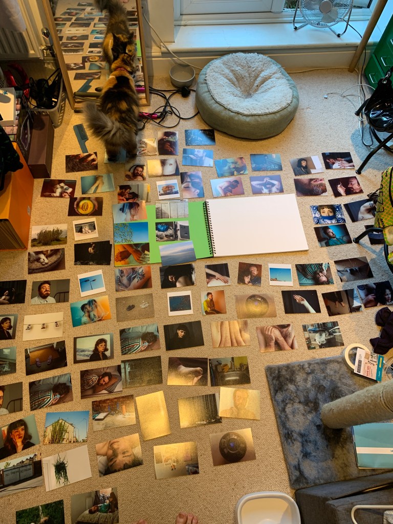 I then decided to by a 40 page A3 scrapbook and began my editing and cutting process digitally, removing any similar photographs as well as anything that did not fit the tone of the project anymore. From there I printed roughly 120 images to begin the process of assembling a physical draft.