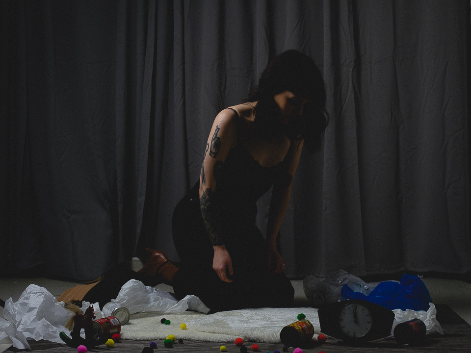 I think one of the most stand out choices for me currently and going forward is that the surroundings and potentially the subjects too are staged with the intent of conveying devotion, beauty as well as its antithesis in the difficulties that surround us in the everyday. The choices involved in this process are extensive, looking at set design, construction, objects in frame, location where required, colour palette, lighting – there is a lot to consider. Currently my FMP “Darling” is in the preliminary stages of development, . For my work in progress portfolio I used my small studio space to create portraits and self-portraits in a basic staged setting with objects that were available to me at the time.